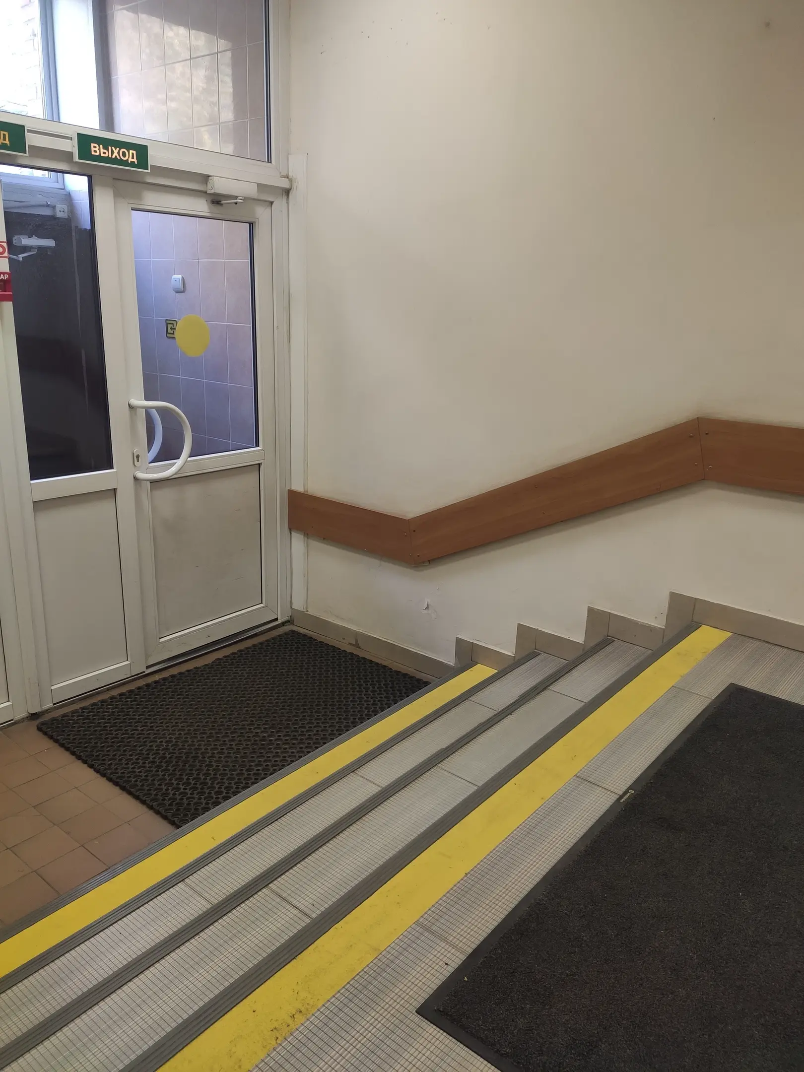 Перед выходом на территорию детского сада имеется табличка с указанием номера телефона для оказания помощи и вызова сопровождающего к месту предоставления услуги