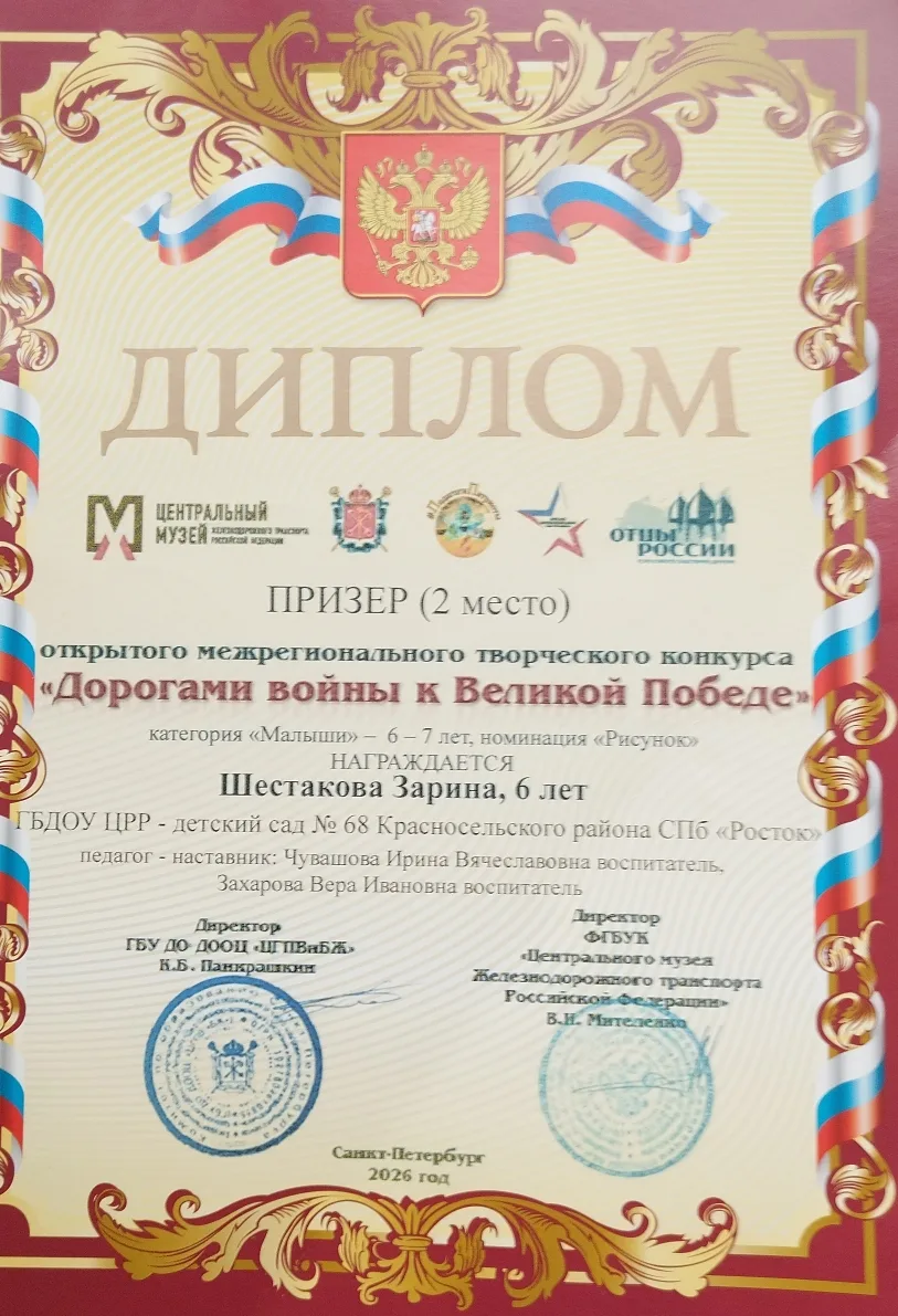 - Благодарственное письмо Администрации Красносельского района Санкт-Петербурга, 2025г