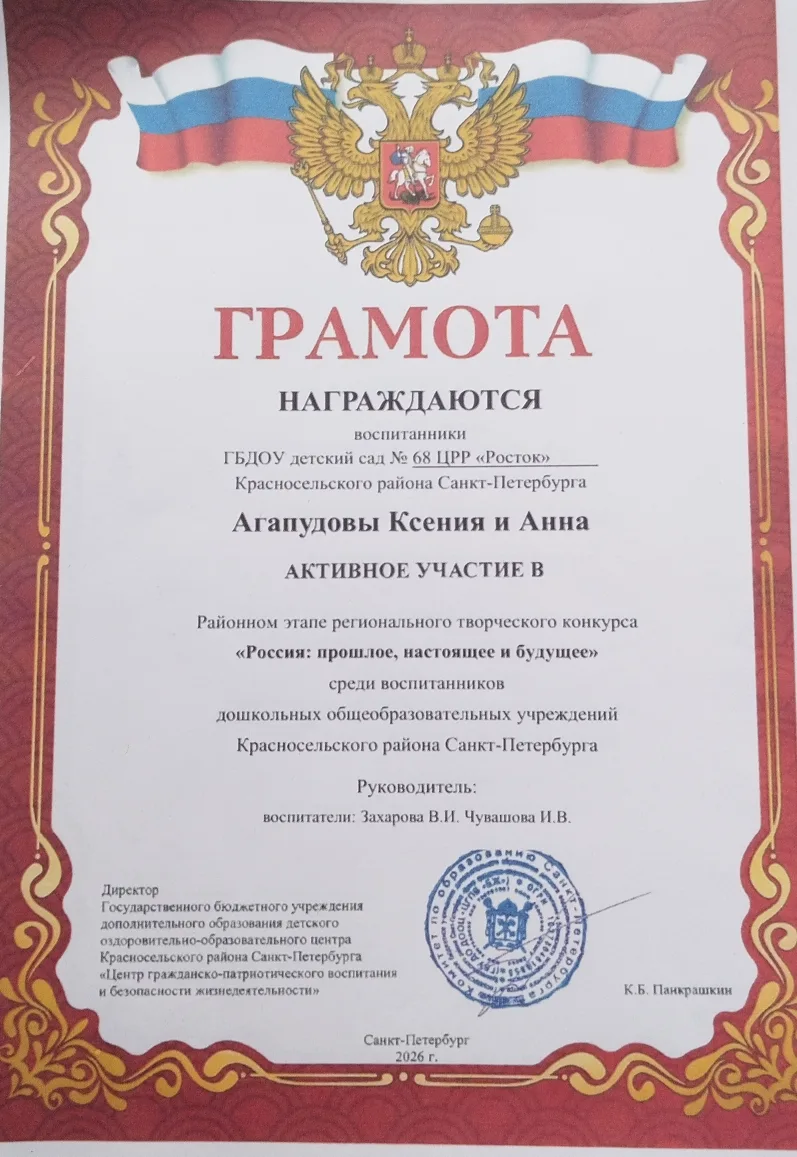 - Всероссийского конкурса «Изумрудный город», номинация: «Букет для мамы» (2017)- Анучина Лиля победитель (1 место)